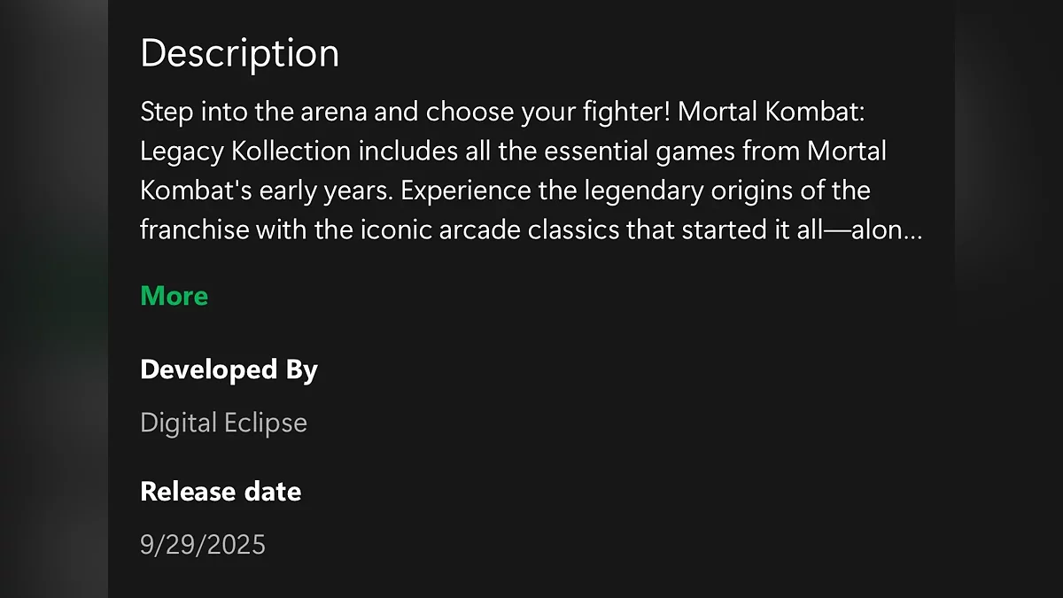 Пользователи Reddit обратили внимание, что приложение Xbox раньше срока указало дату релиза Mortal Kombat: Legacy Kollection. Если информация верна, то выход сборника состоится 29 сентября.