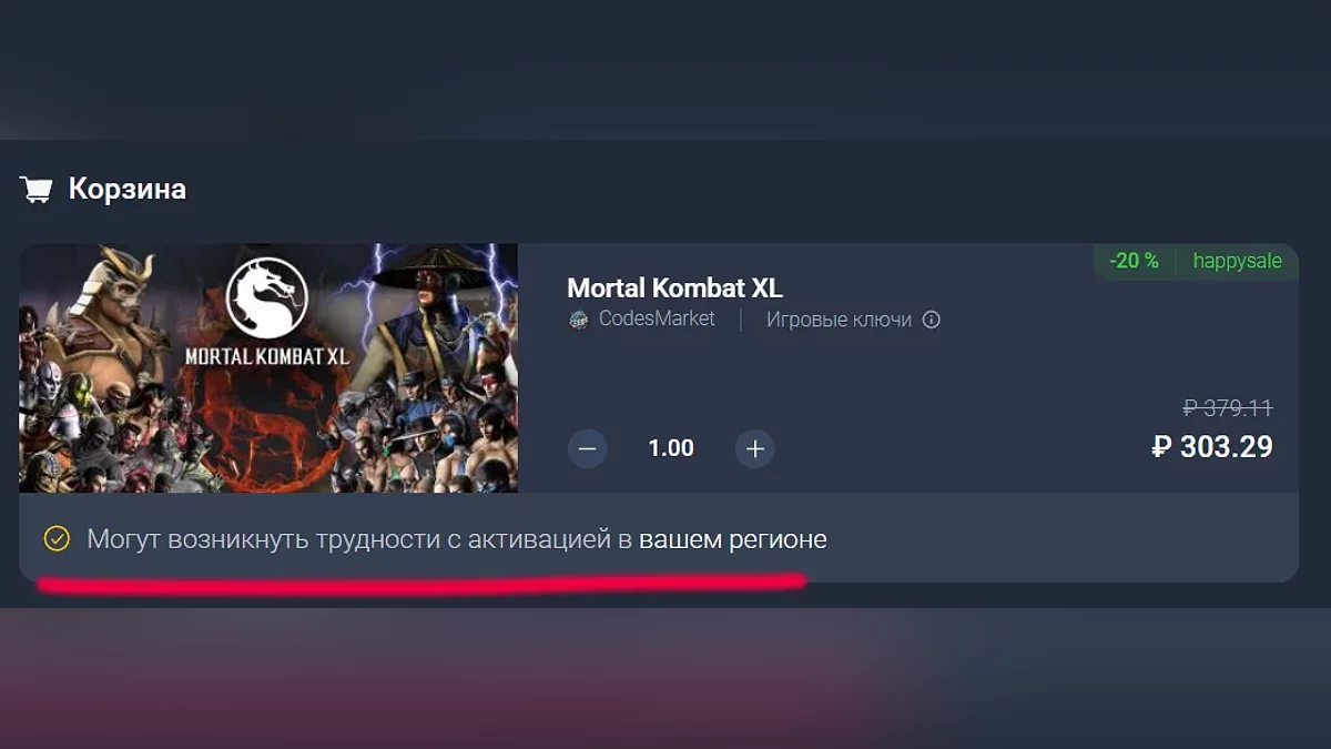 В связи с санкциями многие издатели удалили свои игры из российского Steam. В таком случае с активацией ключа в этом регионе могут возникнуть проблемы. Соответствующая надпись будет в описании товара: