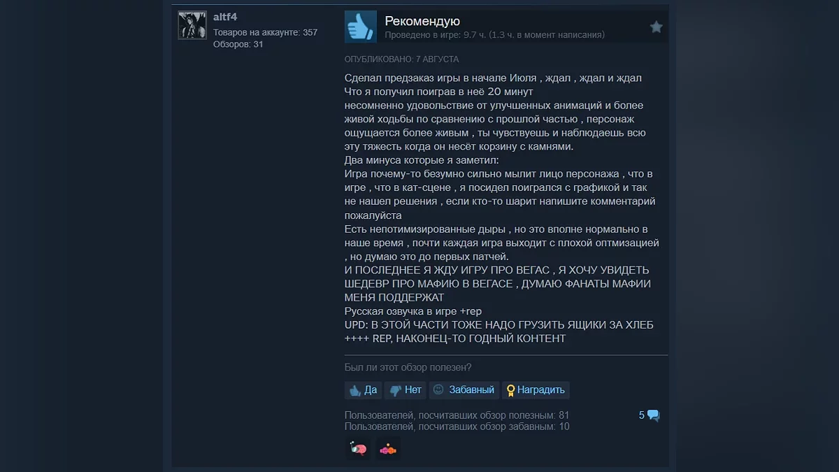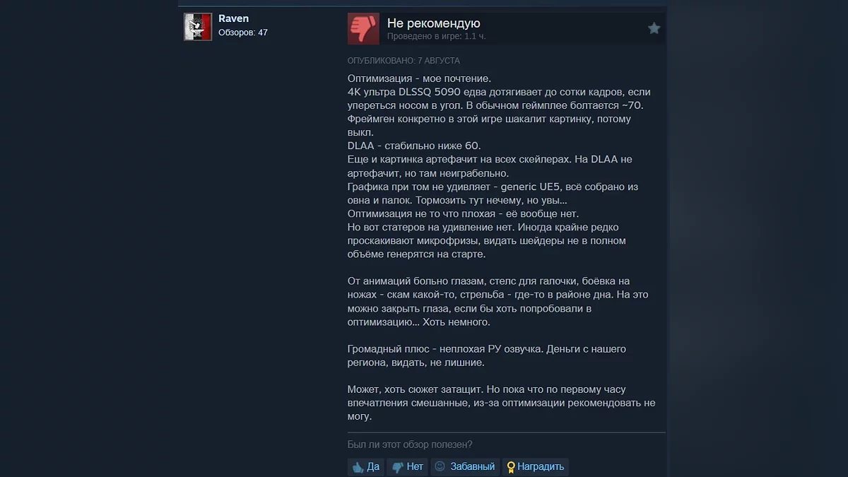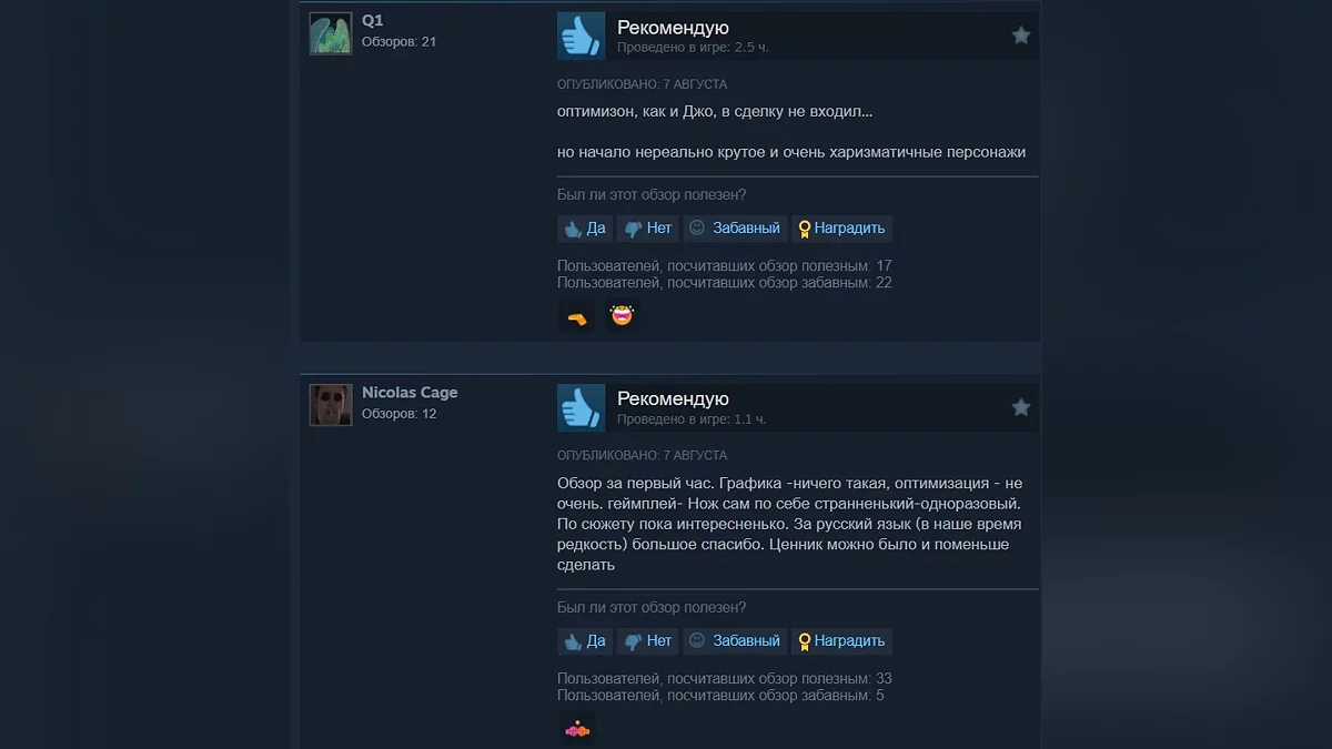 В целом игроки положительно оценивают игру, а среди минусов выделяют посредственную оптимизацию.
