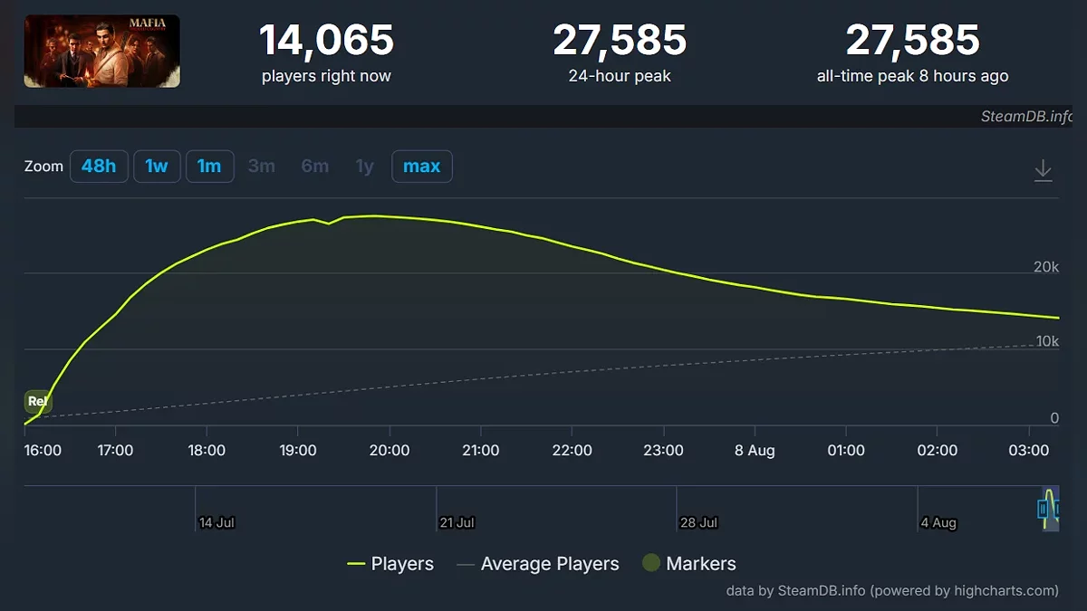 Что касается онлайна, за первый день в игре было зафиксировано 27,5 тыс игроков.
