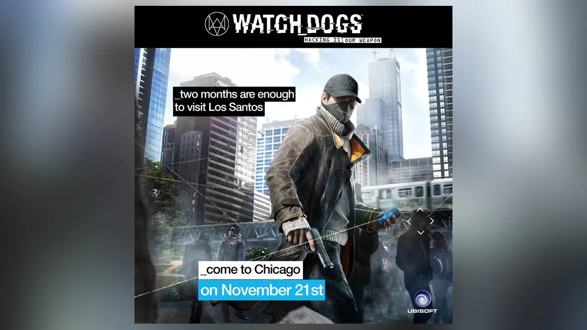 На изображении ниже Ubisoft показала все свое отношение к главному конкуренту Watch Dogs в этом году. Как тонко подметили разработчики, «двух месяцев достаточно, чтобы посетить Лос-Сантос. Чикаго распахнет перед вами двери 21 ноября».