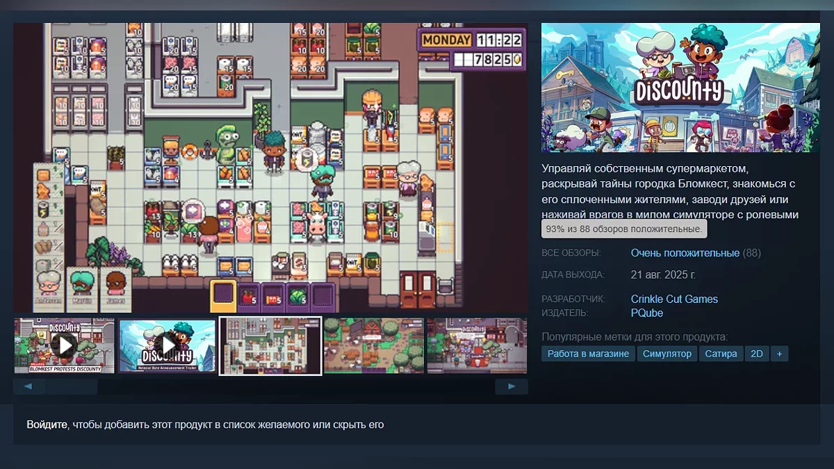 На PC, PS4, PS5, Xbox One, Xbox Series X/S и Nintendo Switch состоялся релиз милого симулятора с ролевыми элементами Discounty, в котором геймерам предстоит управлять собственным супермаркетом. Проект получил очень положительные отзывы в Steam — рейтинг 93% на момент написания новости.