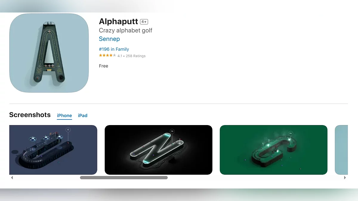 - Alphaputt — мини-гольф, в котором доступно 30 уровней, а также одиночный и многопользовательский режимы (до 4 человек) (загрузить бесплатно).