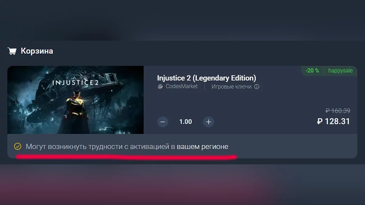 В связи с санкциями многие издатели удалили свои игры из российского Steam. В таком случае с активацией ключа в этом регионе могут возникнуть проблемы. Соответствующая надпись будет в описании товара: