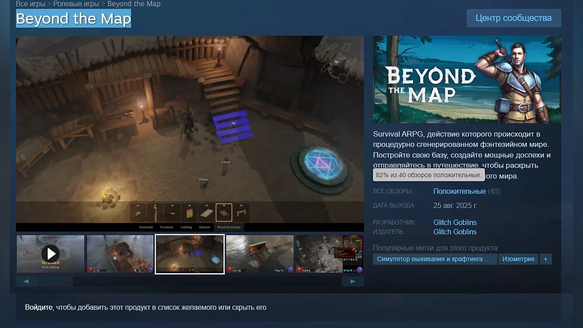 В раннем доступе Steam вышла новая изометрическая Action/RPG под названием Beyond the Map, напоминающая смесь Valheim и Diablo. Проект получил 82% положительных отзывов (на момент написания новости).