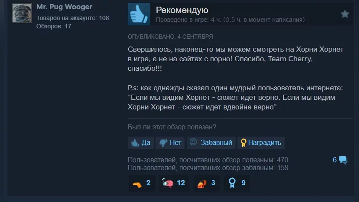 В отзывах большинство геймеров ликуют и благодарят студию Team Cherry за то, что она все-таки сдержала обещание и выпустила игру такой, какой ее хотели видеть фанаты.
