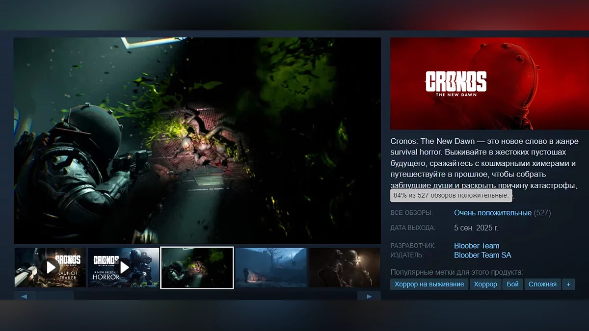 Хоррор на выживание Cronos: The New Dawn уже получил первые отзывы в Steam. Все благодаря раннему доступу, который актуален для всех, кто предзаказал Deluxe-издание игры. Сейчас рейтинг составляет 84%.