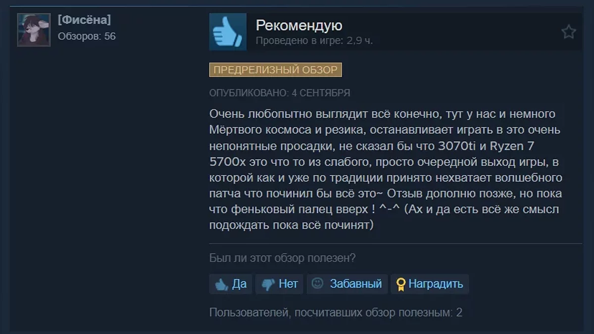 Большинство игроков положительно оценили проект, но среди минусов некоторые пользователи выделяют проблемную оптимизацию. Также проект уже получил оценки критиков.