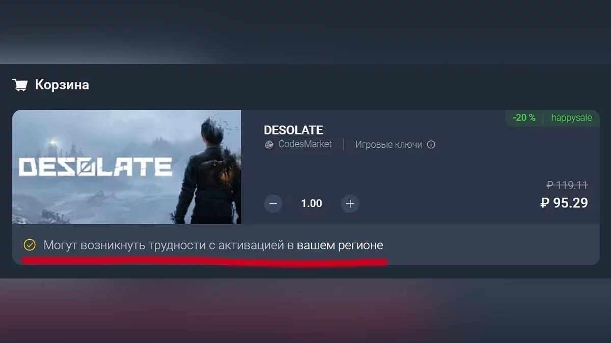 В связи с санкциями многие издатели удалили свои игры из российского Steam. В таком случае с активацией ключа в этом регионе могут возникнуть проблемы. Соответствующая надпись будет в описании товара: