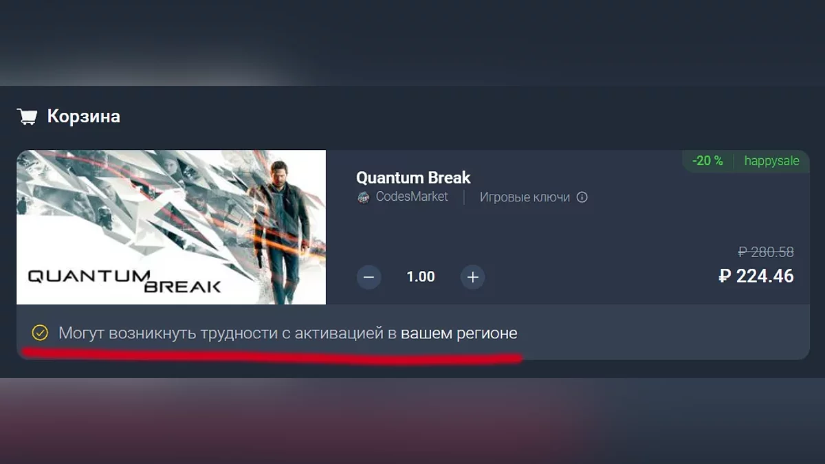 В связи с санкциями многие издатели удалили свои игры из российского Steam. В таком случае с активацией ключа в этом регионе могут возникнуть проблемы. Соответствующая надпись будет в описании товара: