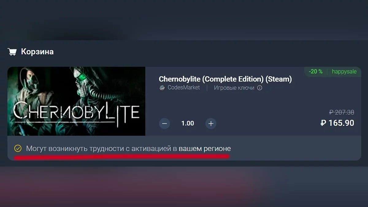 В связи с санкциями многие издатели удалили свои игры из российского Steam. В таком случае с активацией ключа в этом регионе могут возникнуть проблемы. Соответствующая надпись будет в описании товара: