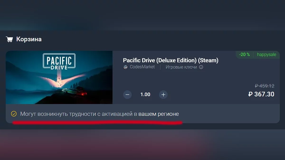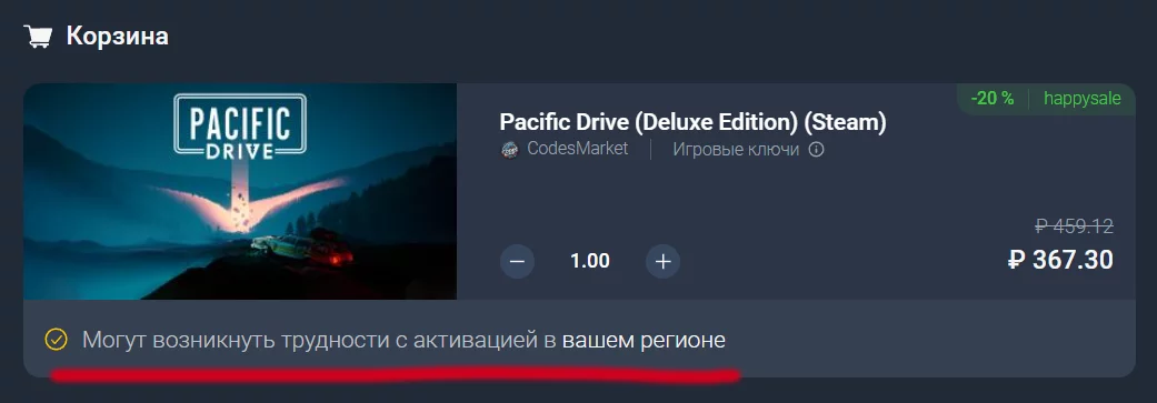В связи с санкциями многие издатели удалили свои игры из российского Steam. В таком случае с активацией ключа в этом регионе могут возникнуть проблемы. Соответствующая надпись будет в описании товара: