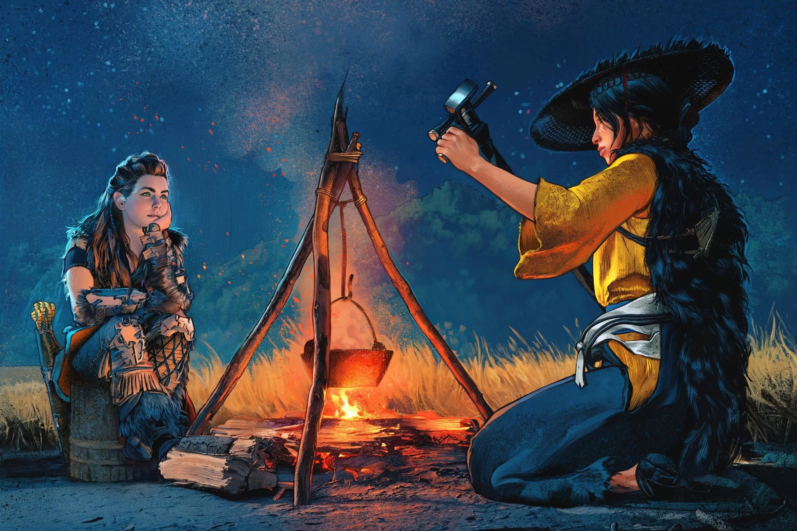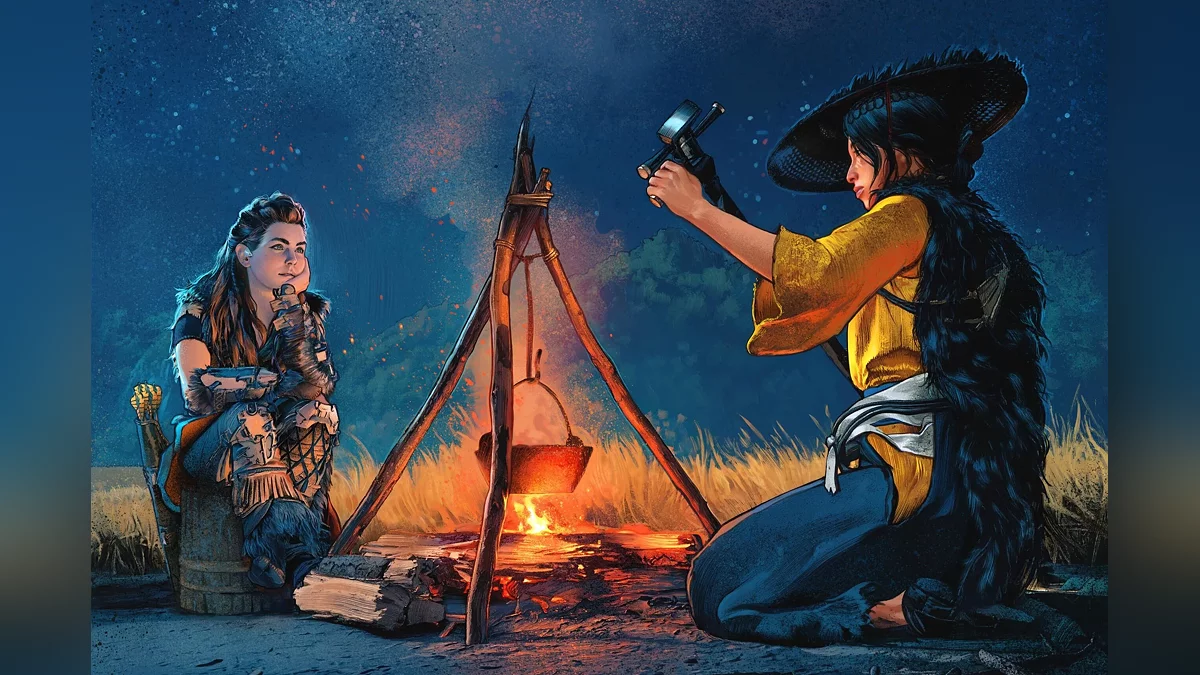 Нашим дорогим друзьям из Sucker Punch Productions — поздравляем с запуском Ghost of Yotei! Элой и Ацу разделяют огонь, а сегодня мы вместе празднуем ваше невероятное достижениеАрт от ведущего художника Guerrilla Ильи Голицынa (Ilya Golitsyn).