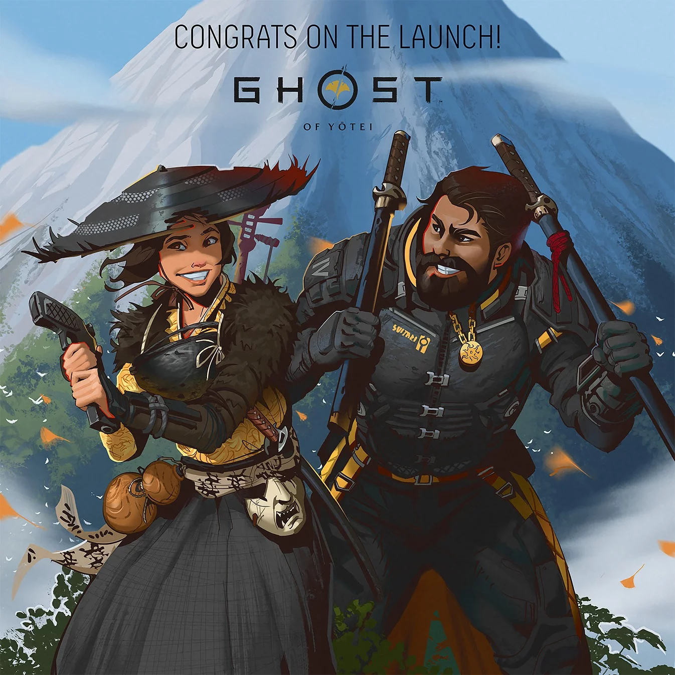 Сегодня (2 октября) состоялся выход приключенческого экшена с открытым миром Ghost of Yotei, который был разработан Sucker Punch Productions. Авторы из других студий решили поздравить разработчиком с релизом, опубликовав забавные арты и открытки.