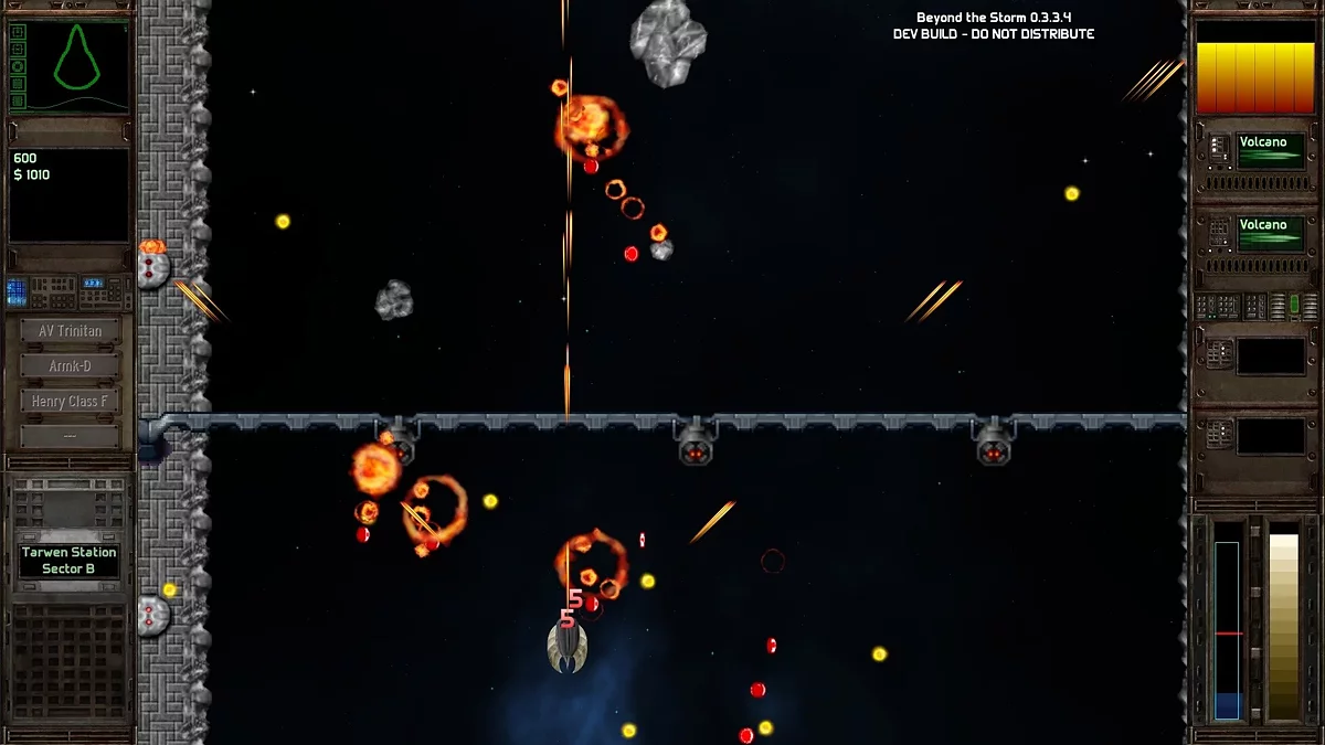 Beyond the Storm — это аркадный шутер с видом сверху в духе классических игр жанра, вдохновлённый Tyrian (1995). Игроку предстоит исследовать открытую галактику, разделенную на сектора с червоточинами, туманностями, астероидными полями и флотами противников, а также посещать планеты и станции, каждая из которых предлагает собственные уровни.