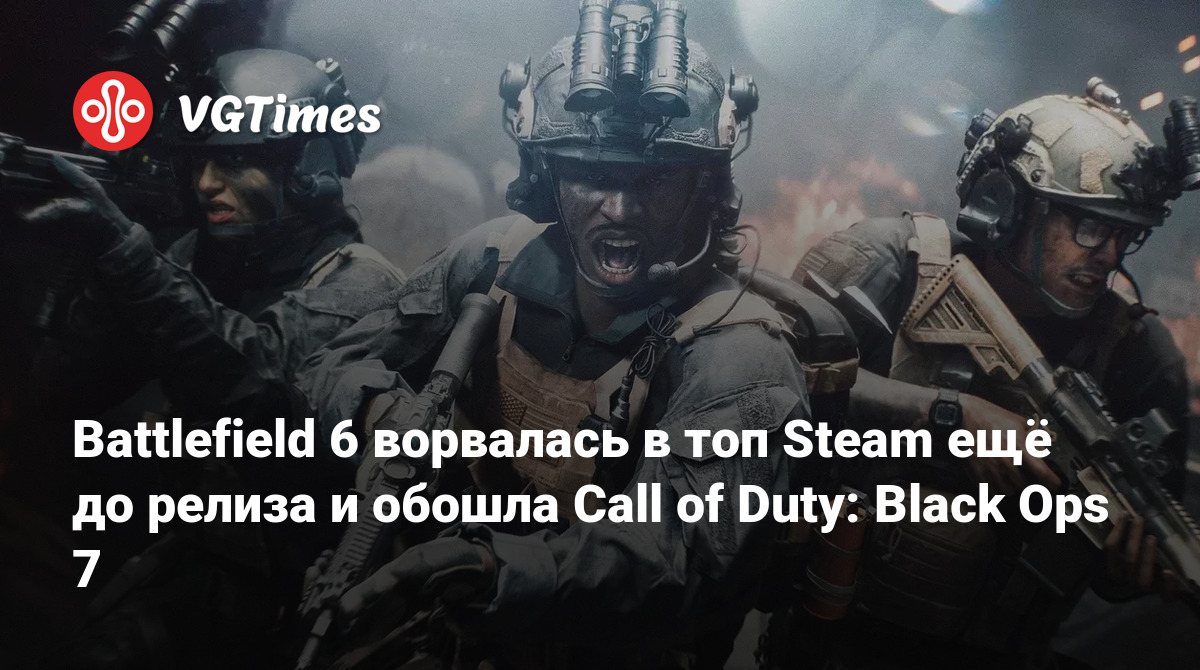 Battlefield 6 ворвалась в топ Steam ещё до релиза и обошла Call of Duty: Black Ops 7