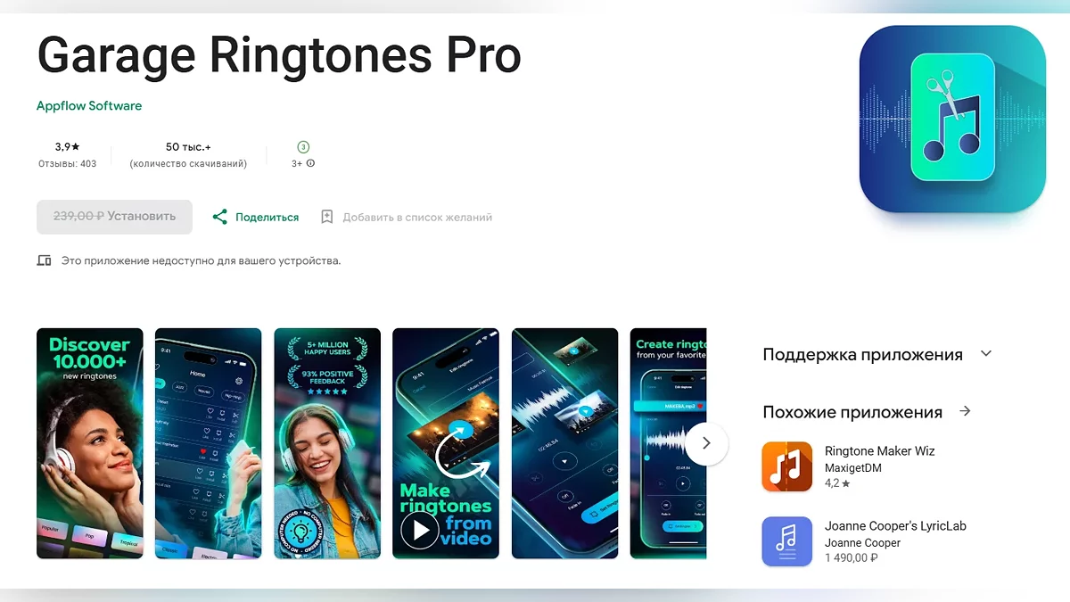 - Garage Ringtones Pro — программа для редактирования рингтонов (загрузить бесплатно);