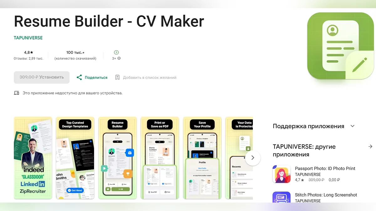 - Resume Builder — CV Maker — программа для создания резюме (загрузить бесплатно);