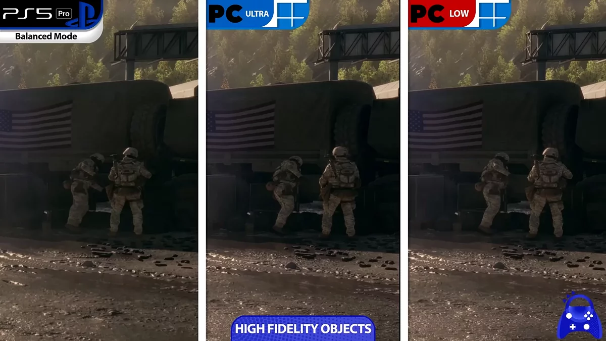После релиза военного шутера Battlefield 6 в сети появились ролики со сравнением графики. В одном из них можно увидеть, как в игре отличается картинка на PS5 Pro и PC с разными настройками.