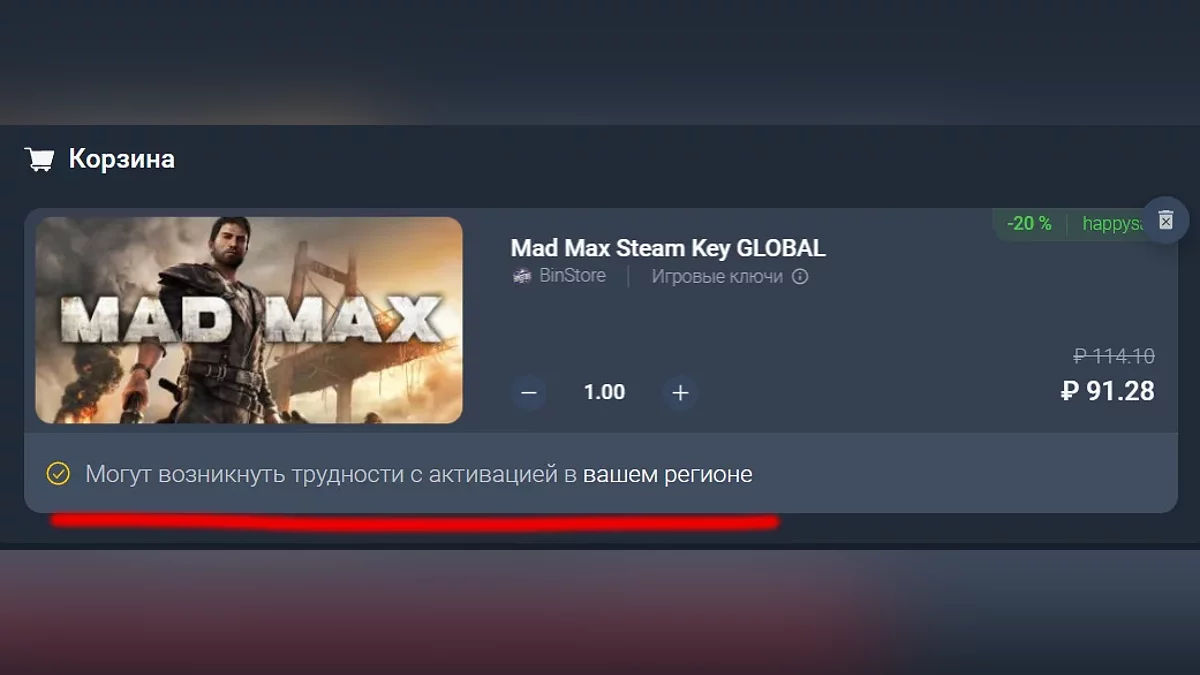 В связи с санкциями многие издатели удалили свои игры из российского Steam. В таком случае с активацией ключа в этом регионе могут возникнуть проблемы. Соответствующая надпись будет в описании товара: