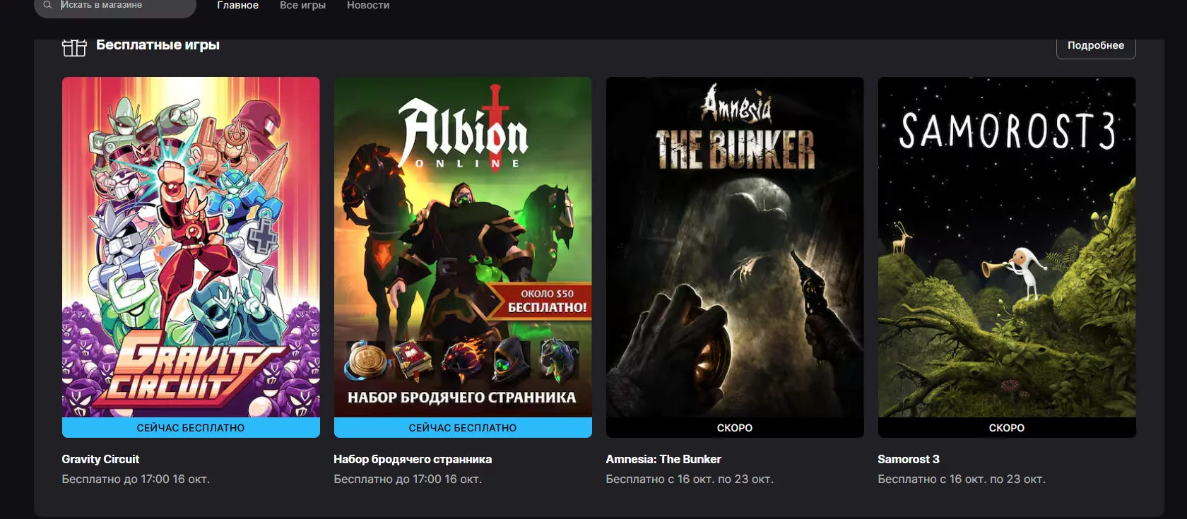 В 2025 году Epic Games Store сделал акцент на играх чешской студии Amanita Design — разработчике атмосферных квестов вроде Machinarium и Samorost. За этот год площадка уже шесть раз раздавала проекты студии, а с 16 по 23 октября пользователи смогут бесплатно забрать Samorost 3. В тот же период в магазине будет доступна и Amnesia: The Bunker.