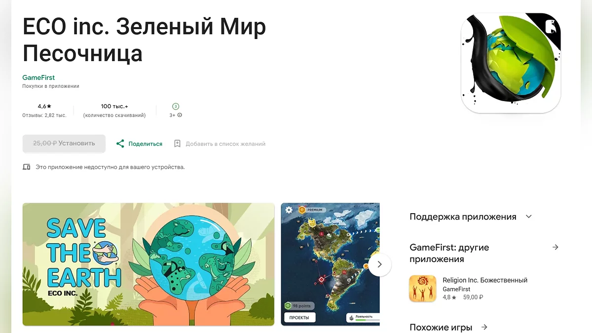 - ECO Inc. Green World Sandbox — стратегическая игра, в которой игрокам предстоит заниматься решением проблем с экологией (загрузить бесплатно);
