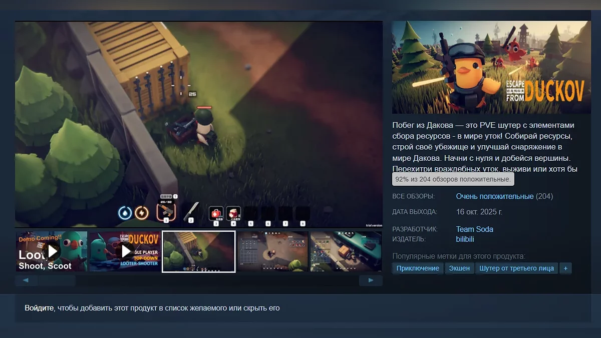 «Наконец-то нормальный клон» и «Изометрический Тарков» — в Steam вышла Escape from Duckov, и у нее уже рейтинг 92%