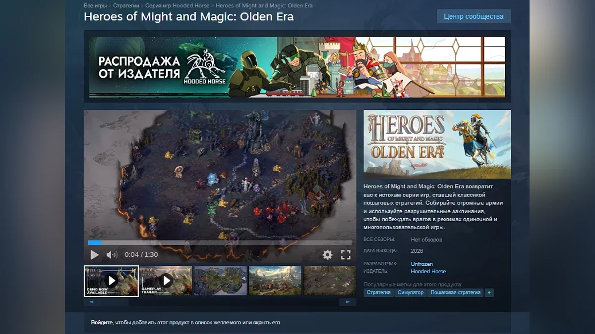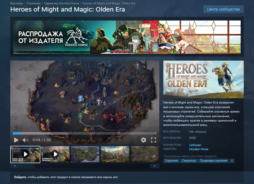 Ожидающие выхода Heroes of Might & Magic: Olden Era фанаты заметили, что в графе «Издатель» в Steam исчезло упоминание Ubisoft. Теперь там указана только Hooded Horse, которая продаёт свои игры в России.