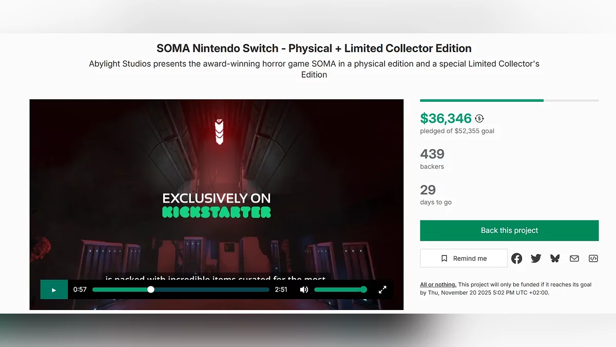 Abylight Studios представила физическое издание хоррора SOMA для Nintendo Switch, а также специальное ограниченное коллекционное издание в честь 10-й годовщины игры. Изначально разработанная Frictional Games и выпущенная на PC в 2015 году, игра теперь доступна и на консоли Nintendo в полностью оптимизированной версии с улучшенной производительностью.