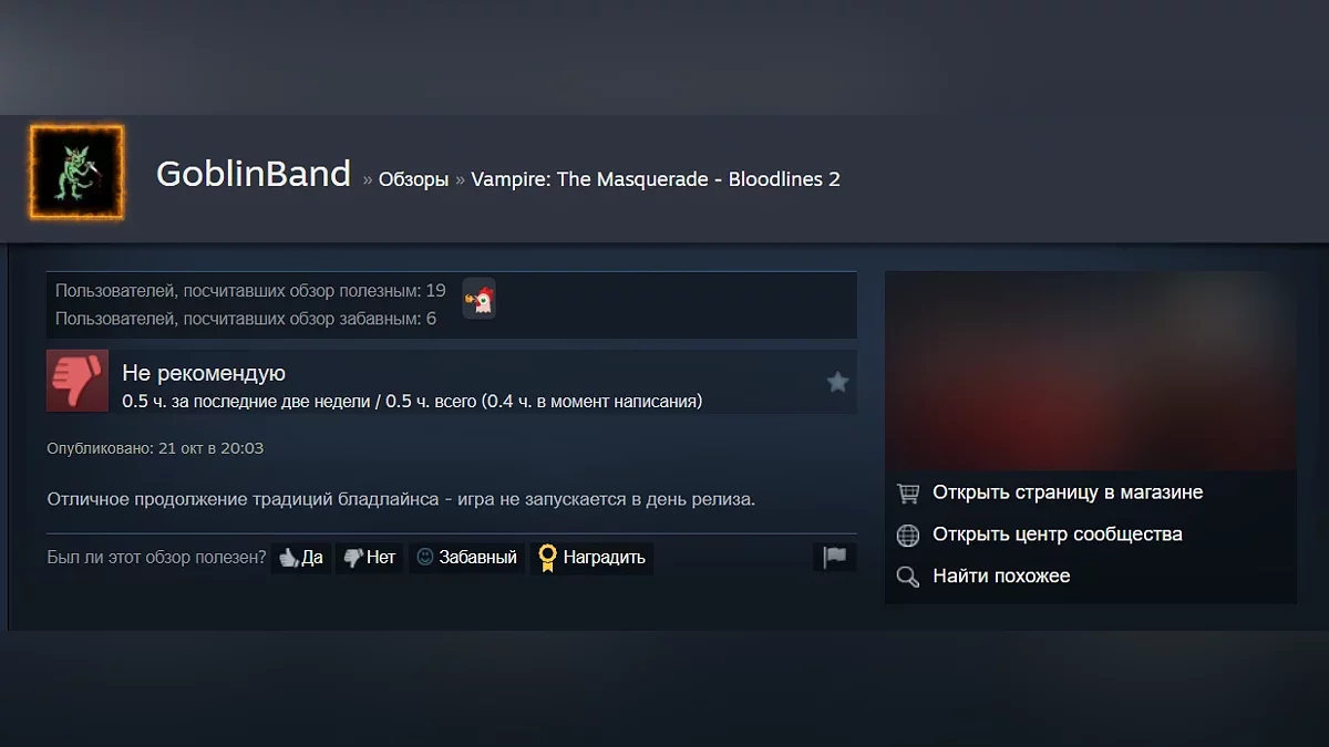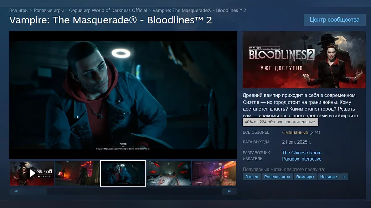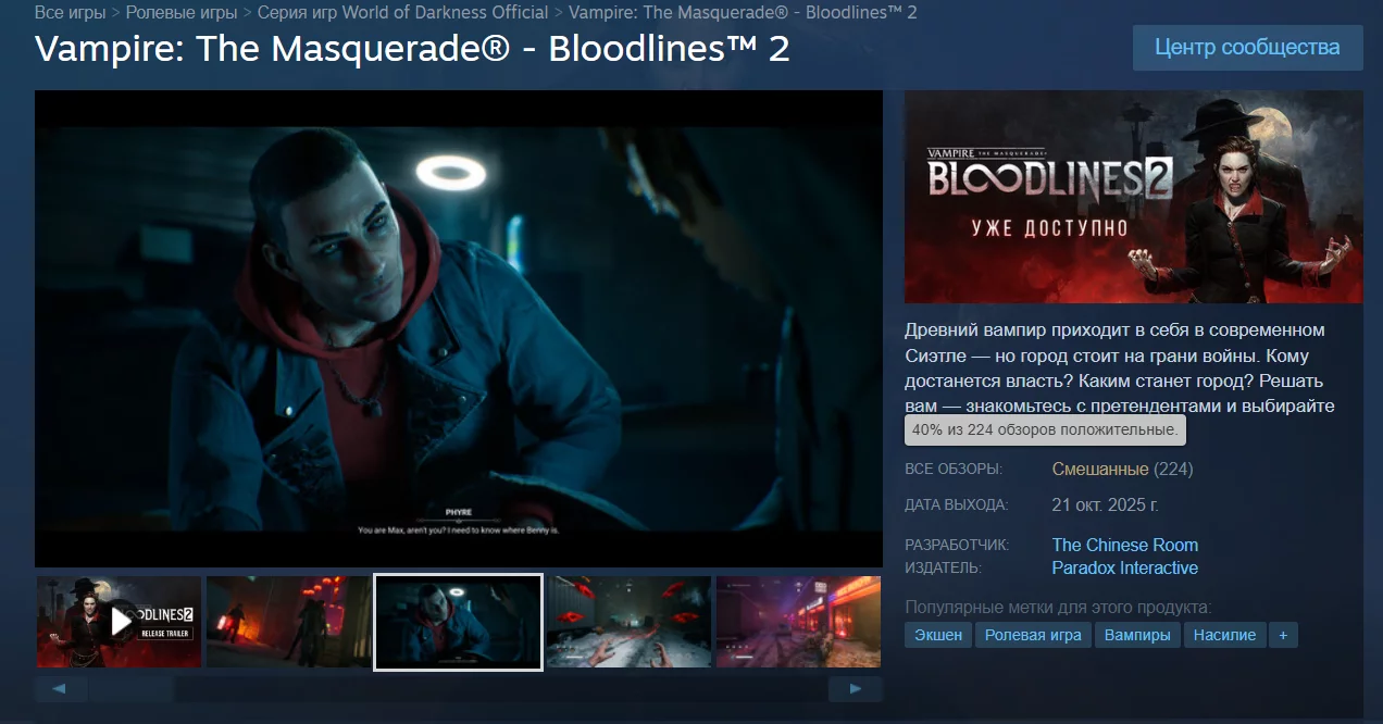 Приключенческий ролевой экшен Vampire: The Masquerade — Bloodlines 2 получил первые пользовательские отзывы в Steam. На момент написания новости рейтинг проекта составляет всего 40%. Некоторые игроки сообщают, что игра не может запуститься.