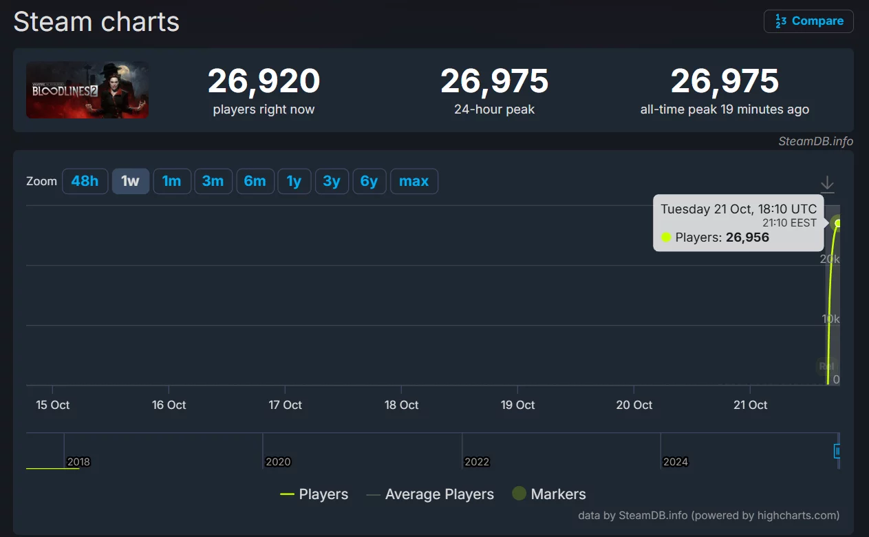 Vampire: The Masquerade — Bloodlines 2 вышла на PC и консолях — ее онлайн в Steam уже превысил 18 тыс