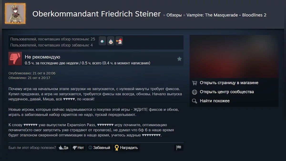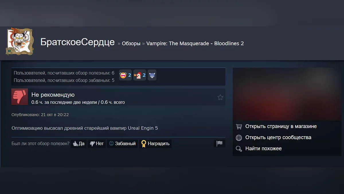 «Оптимизацию высосал древний вампир» — как геймеры оценили Vampire: The Masquerade — Bloodlines 2 в Steam