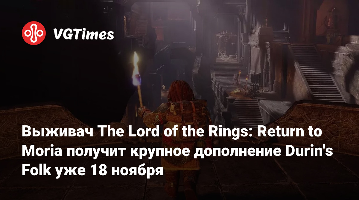 Авторы The Lord of the Rings: Return to Moria из студии Free Range Games объявили о выходе масштабного DLC под названием Durin's Folk. Расширение выйдет 18 ноября и, по словам разработчиков, добавит более 20 часов нового контента.