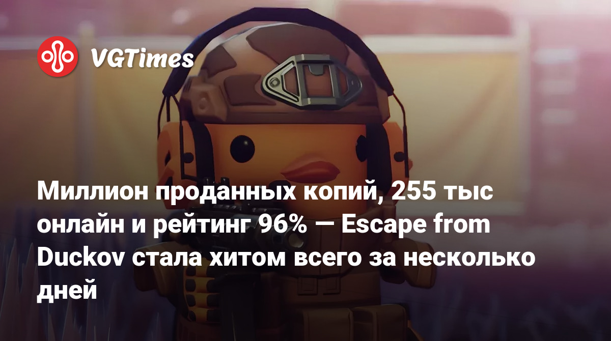 На прошлой неделе в Steam вышла пародийная игра Escape from Duckov, которая внезапно стала очень популярной и всего за пять дней разошлась миллионным тиражом. Сейчас у нее почти 13 тыс отзывов (рейтинг 96%), а онлайн в пике превысил 255 тыс игроков.