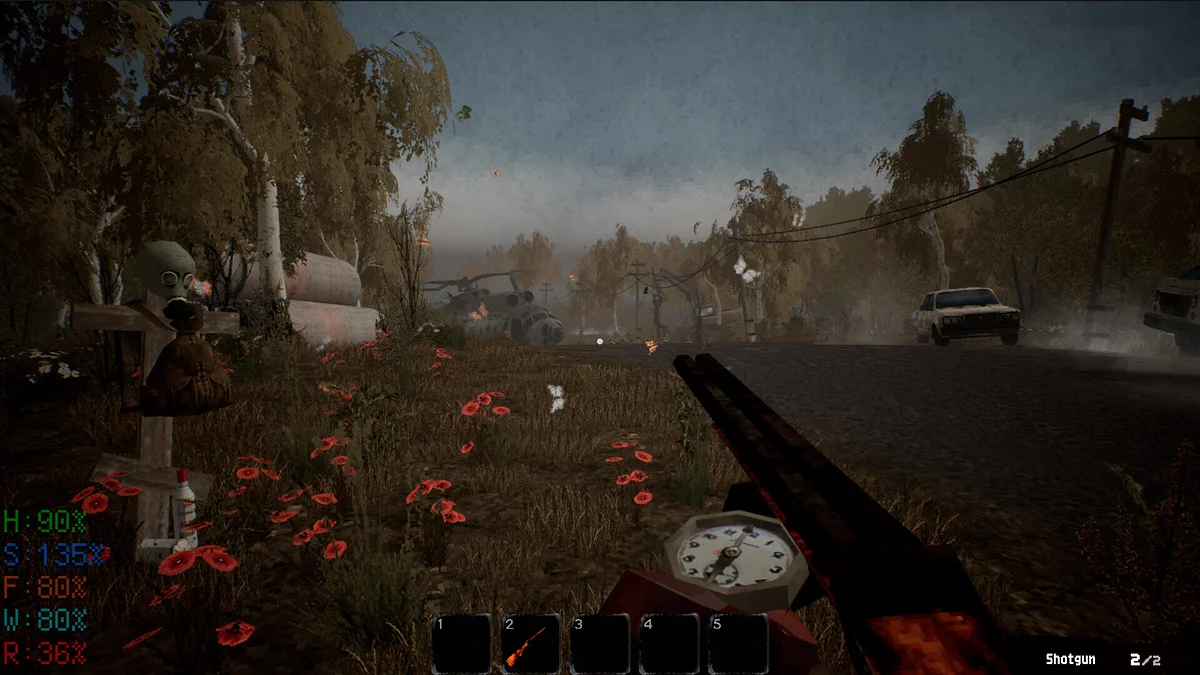 Зона полна аномалий с непредсказуемыми эффектами, мутировавших существ и агрессивных выживших, а также скрытых артефактов с уникальными свойствами. В бункере можно развивать своё убежище, устанавливать генераторы, строить рабочие станции, готовить еду и обустраивать интерьер найденными предметами.