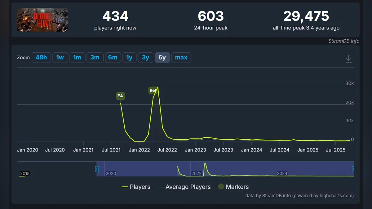 Разработчики объясняют это падением числа игроков: в последнее время онлайн игры сильно просел. К примеру, за последние 24 часа пиковый онлайн составлял 603 игрока, в то время как в 2022 году он был на уровне 29 тыс игроков.