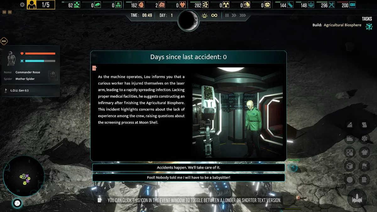 Задумка интересная — смесь IXION, Rimworld и Frostpunk. Потенциала много: фракции, указы, микроменеджмент экипажа. Но управление дёрганое, всё медленное, как будто плавает в мёду. Косяки перевода, косяки в интерфейсе. Жду патчи первого дня.