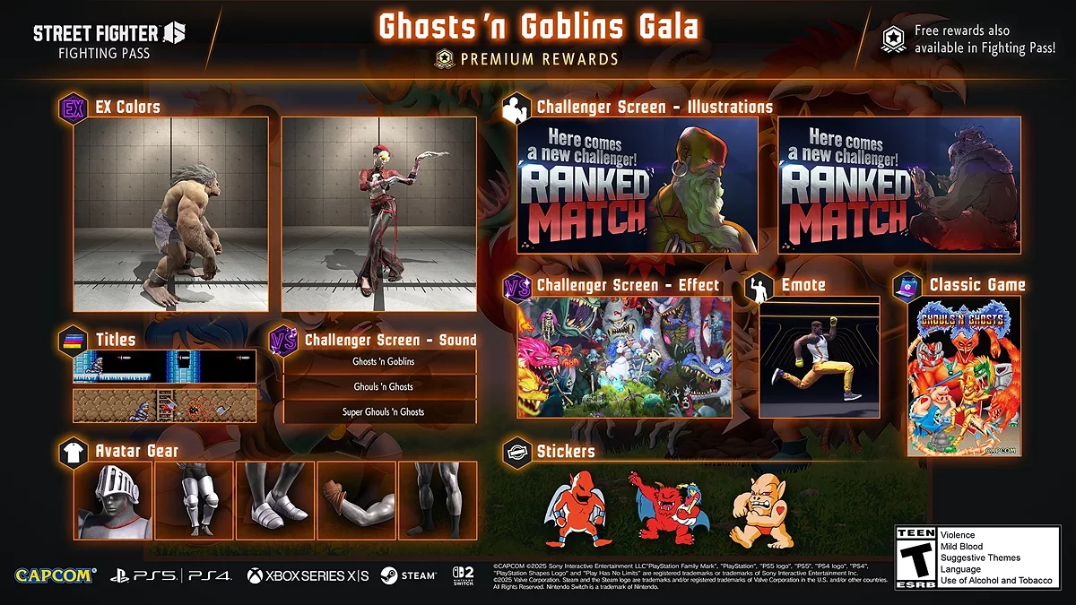 Capcom анонсировала кроссовер Street Fighter 6 с Ghosts 'n Goblins. В честь Хэллоуина в игре появился новый боевой пропуск (Fighting Pass) под названием Ghosts 'n Goblins Gala.