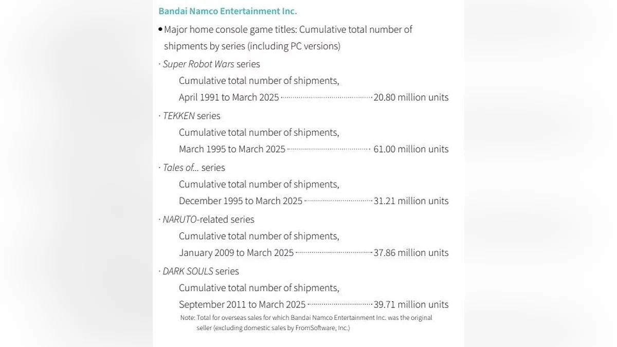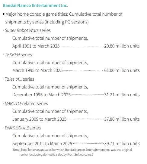 Также в отчёте упомянута серия Super Robot Wars с совокупным тиражом 20,8 миллиона копий.