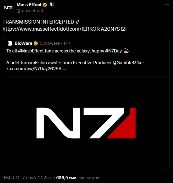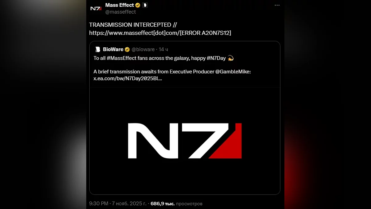 Поклонники Mass Effect получили приятный, хоть и небольшой сюрприз от BioWare к новой годовщине N7 Day. Разработчики оставили зашифрованное послание, которое привело игроков к концепт-арту пятой части.
