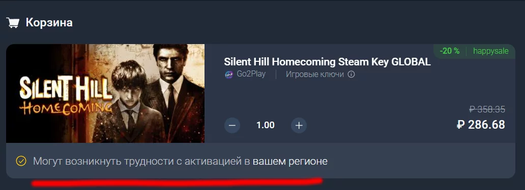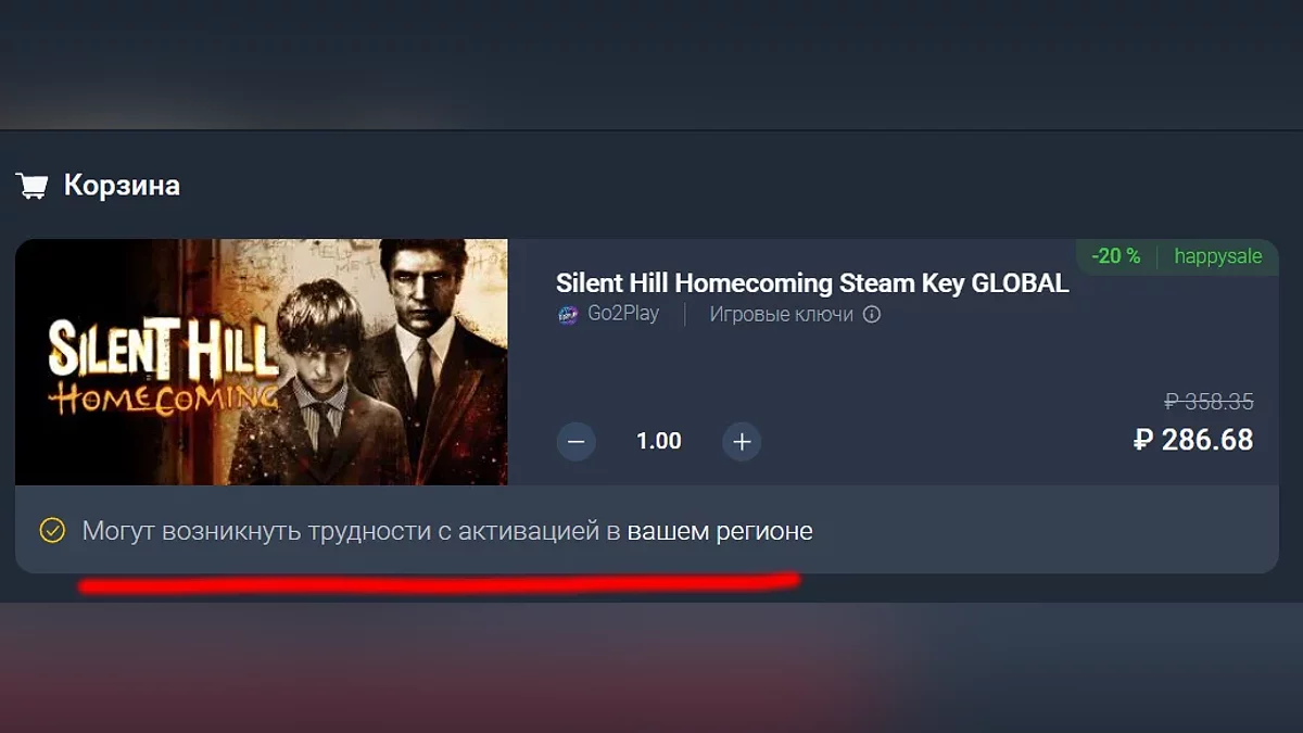 В связи с санкциями многие издатели удалили свои игры из российского Steam. В таком случае с активацией ключа в этом регионе могут возникнуть проблемы. Соответствующая надпись будет в описании товара: