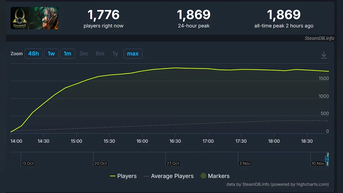 Что касается онлайна, в первый день в игре было зафиксировано 1,8 тыс геймеров.