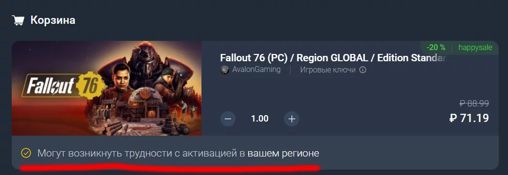 В связи с санкциями многие издатели удалили свои игры из российского Steam. В таком случае с активацией ключа в этом регионе могут возникнуть проблемы. Соответствующая надпись будет в описании товара: