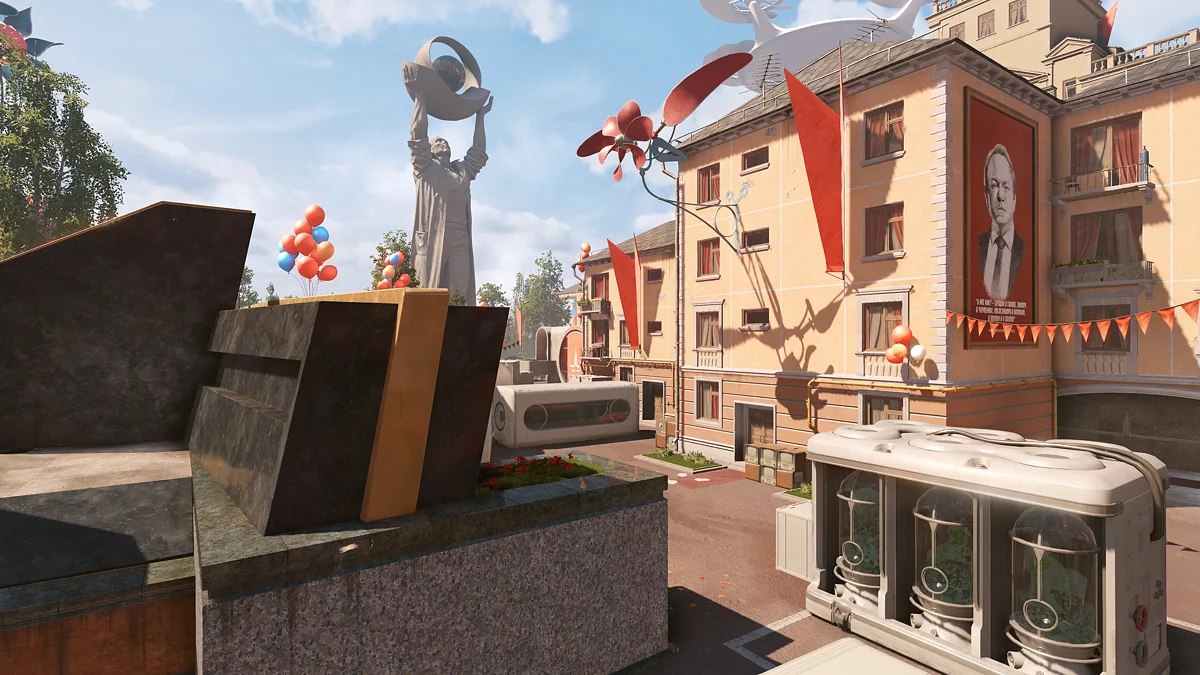 Новая карта «Атомград» полностью передаёт атмосферу Предприятия 3826: ретро-футуризм, узнаваемые объекты и камео роботов — в том числе ремонтного шкафа Элеаноры. Матчи сопровождаются оригинальной музыкой Atomic Heart. На карте доступны режимы «Подрыв» и «Добыча».