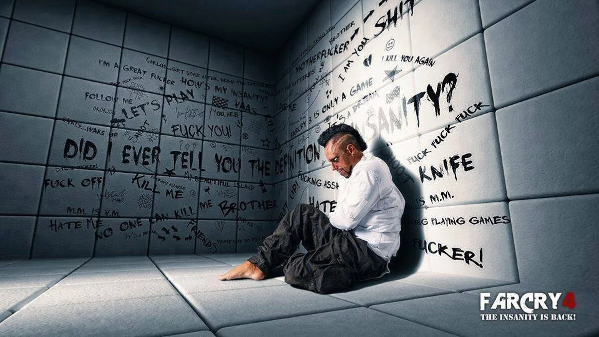 На картинке вы можете видеть Вааса, помещенного в психиатрическую лечебницу. Вокруг него множество надписей. Но давайте вспомним. Ведь Джейсон убил Вааса в Far Cry 3, тогда почему именно он? Возможно, следующая часть станет неким приквелом, где нам дадут поиграть за Вааса и узнать его историю. Все возможно. Вариантов, на самом деле, масса.