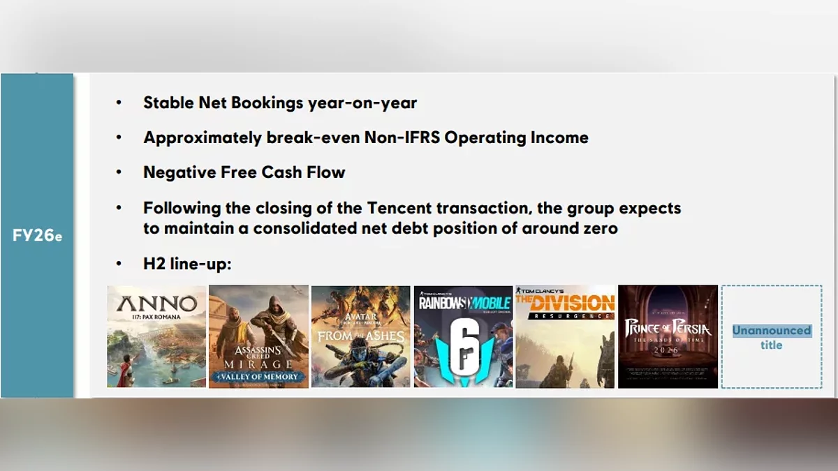 Эта информация появилась на фоне публикации Ubisoft задержанного финансового отчёта — того самого, из-за которого временно приостанавливались торги акциями, что подогрело слухи о возможных переменах внутри компании. И именно там, среди списка будущих релизов, затесался «необъявленный проект», который должен выйти до конца текущего финансового года.