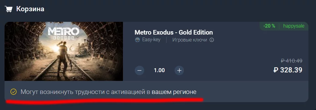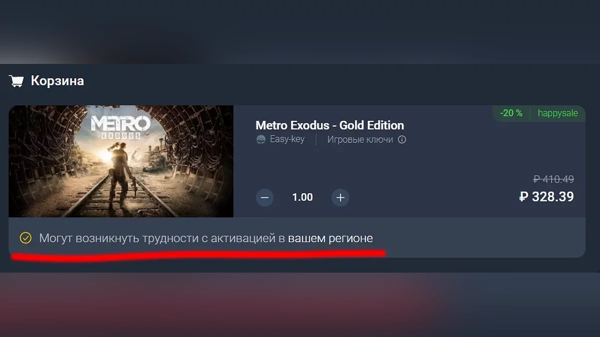 В связи с санкциями многие издатели удалили свои игры из российского Steam. В таком случае с активацией ключа в этом регионе могут возникнуть проблемы. Соответствующая надпись будет в описании товара: