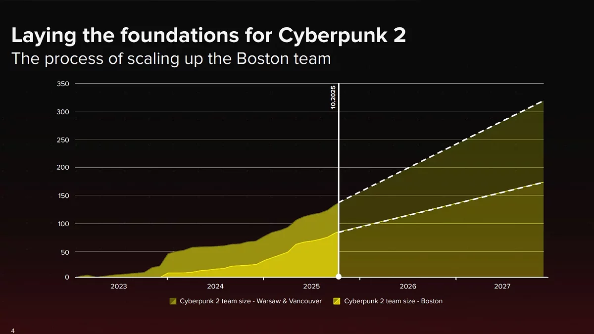 Главный рост пришёлся на Cyberpunk 2: команда проекта расширилась со 116 до 135 разработчиков, что подчёркивает ускорение работ над сиквелом. Штат разработчиков расширяется в Бостоне, Варшаве и Ванкувере.