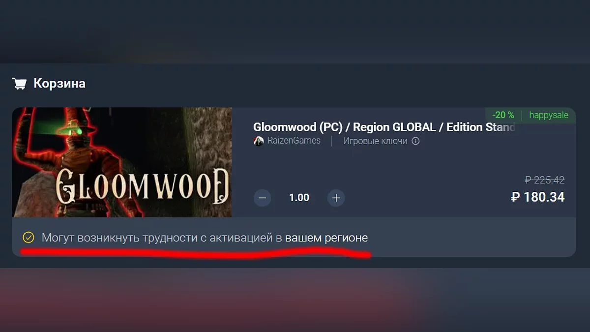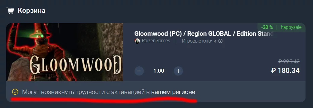 В связи с санкциями многие издатели удалили свои игры из российского Steam. В таком случае с активацией ключа в этом регионе могут возникнуть проблемы. Соответствующая надпись будет в описании товара: