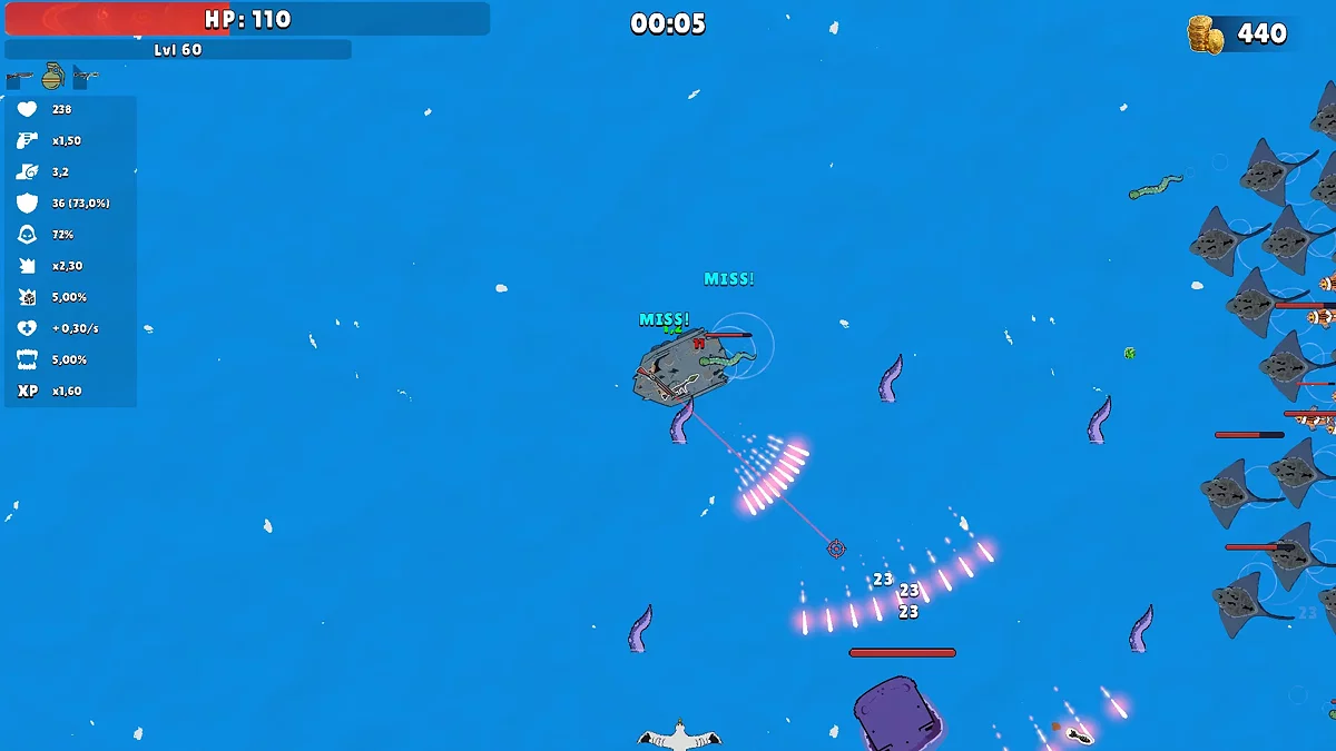 Weapon Case — динамичный рогалик с видом сверху, в котором игрок управляет кораблём и отражает бесконечные волны морских мутантов. В начале каждого забега выбирается судно и основное оружие, которое нужно направлять вручную, тогда как дополнительные системы ведут огонь автоматически. По мере нарастающей угрозы открываются новые виды вооружения, усиливаются существующие модули и формируется всё более мощная плавучая база. Процедурная структура делает каждое прохождение неповторимым, а сражения включают как обычных противников, так и элитных врагов с крупными боссами из глубин океана. Раньше проект продавался за 125 руб.